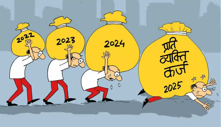भारतीय रिजर्व बैंक (RBI) की जून 2025 में जारी फाइनेंशियल स्टेबिलिटी रिपोर्ट में बताया गया है कि प्रति व्यक्ति कर्ज मार्च 2023 की तुलना में ₹90,000 बढ़ गया है। 2023 में यह ₹3.9 लाख था, जबकि अब यह ₹4.8 लाख तक पहुंच चुका है। बीते दो वर्षों में इसमें 23% की तेजी देखी गई है।