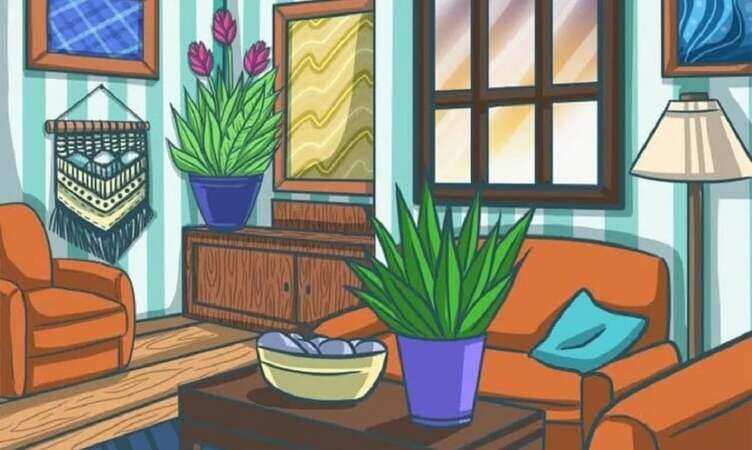 अच्छे अच्छे लोगों का इस तस्वीर को देखने के बाद दिमाग घूम जाएगा और शायद ही वो पंख को खोज पाएं। आइए देखते हैं कि इस तस्वीर में क्या छुपा है। इस तस्वीर में आपको एक लिविंग रुम नजर आ रहा होगा जिसमें सोफा, लैंप, गमलों के साथ और भी सामान मौजूद है,लेकिन इन सबके बीच एक पंख भी छुपा हुआ है। आपको उस पंख को खोजना है और अपने आप को जीनियस साबित करना है। अगर आप 10 सेकेंड में पंख को खोज लेंगे तो आपको सबसे बड़ा जीनियस कहा जाएगा।रूसी कार्टूनिस्ट वेलेंटाइन डबिनिन द्वारा डिजाइन किए गए विजन टेस्ट का दावा है कि दुनिया की आबादी का केवल 1% ही छवि में छिपे हुए पंख को 1 मिनट से भी कम समय में ढूंढ सकता है।