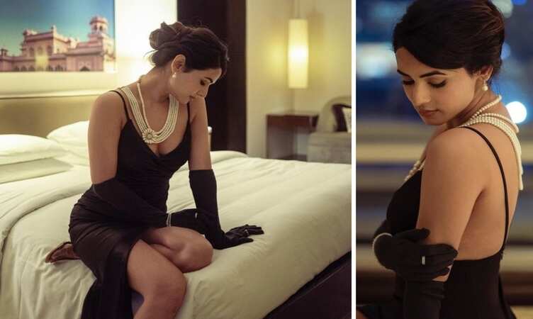 ब्लैक ड्रेस पर ये सफेद मोतियों की माला एक्ट्रेस सोनल चैहान के लुक में चार चांद लगा रही हैं, जिससे एक्ट्रेस और ग्लैमरस और बोल्ड नजर आ रही हैं. साथ ही फैंस को दीवाना बना रही हैं. इसी के साथ सोनल का बिल्कुल लाइट मेकअप उनकी खूबसूरती को और उभार रहा है.