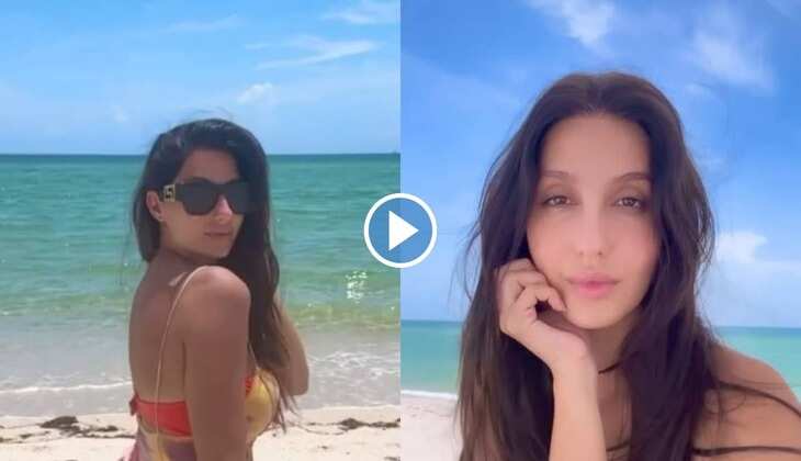 Nora Fatehi ने बिकिनी पहन समंदर किनारे बीच पर लगाई आग, वीडियो देख परफेक्ट फिगर पर अटकी फैंस की निगाहें