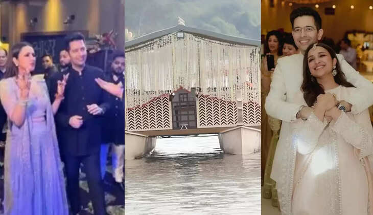 हरभजन सिंह की पत्नी और अभिनेता गीता बसरा ने एक वीडियो साझा किया जब वे शादी में शामिल होने के लिए नाव में बैठे थे। इस बीच, राघव चड्ढा की बारात में अरविंद केजरीवाल काली शर्ट-पैंट और सफेद पगड़ी में नजर आए। वहीं पंजाब के सीएम भगवंत मान पीली पगड़ी के साथ क्रीम कुर्ता पायजामा में नजर आए. बताया जा रहा है कि शादी में दूल्हा-दुल्हन ने सफेद क्रीम रंग के डिजाइनर कपड़े पहने थे.
