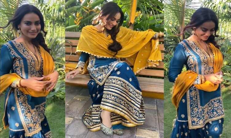 अब बात करें सुरभि के ऑउटफिट की तो एक्ट्रेस ने नील रंग का शरारा पहना है और उस पर पीला दुपटा एक दम जबरदस्त मेल खा रहा है। साथ ही सुरभि के छुमके उनके इस अवतार पर चार चांद लगा रहें हैं।