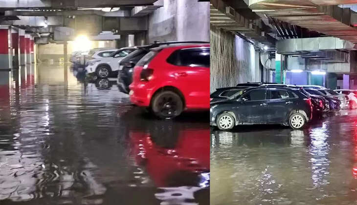 गौर सिटी सेंटर में जलजमाव से हड़कंप: बारिश में डूबी बेसमेंट पार्किंग, NOC पर उठे सवाल
