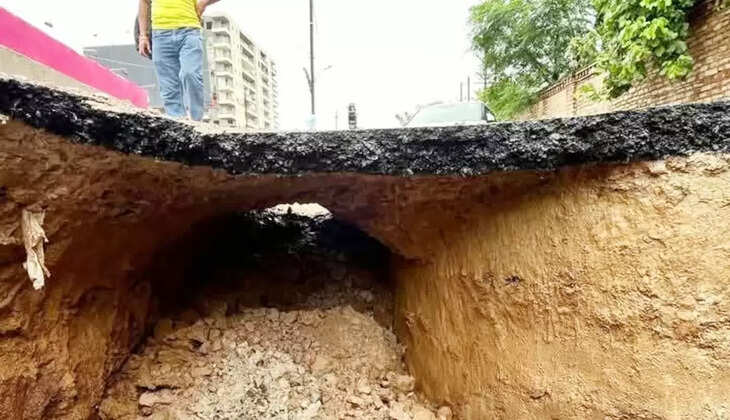 ग्वालियर की 18 करोड़ की सड़क बनी ‘सुरंग’, 12 दिन में 8 बार धंसी