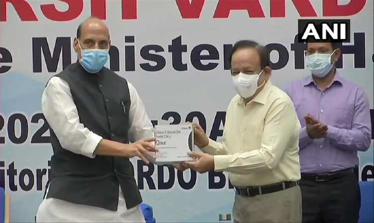 सामाचार एजेंसी एएनआई के मुताबिक रक्षामंत्री राजनाथ सिंह और केंद्रीय स्वास्थ्य मंत्री हर्षवर्धन ने सोमवार को सुबह 10.30 बजे वीडियो कॉन्फ्रेंसिंग के माध्यम से 2DG दवा की पहली खेप जारी कर दी है. आपको बता दें कि इस दवा को DRDO की न्युक्लियर मेडिसीन इंस्टीट्यूट एंड अलाइड साइंसेज (INMAS) ने डॉक्टर रेड्डी लैब के साथ मिलकर तैयार किया है.