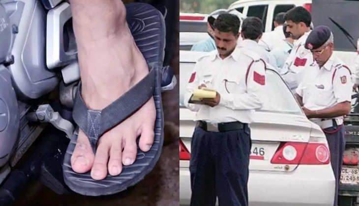 चप्पल पहनकर बाइक चलाने पर चालान का नियम