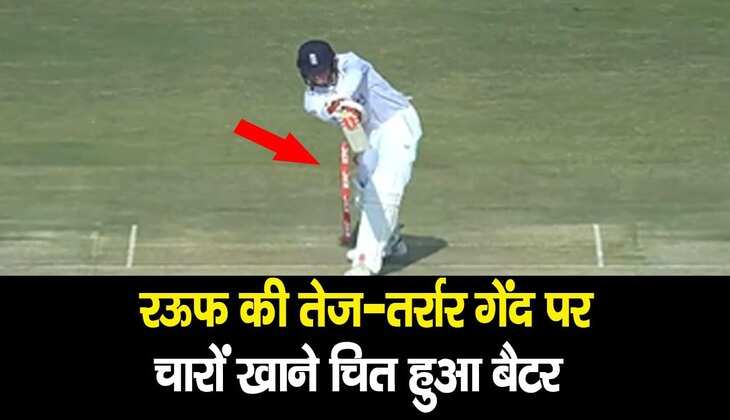 इग्लैंड को पहला झटका पाकिस्तान के तेज गेंदबाज हारिस रऊफ ने दिया. उन्होंने ताबड़तोड़ बल्लेबाजी कर रहे जैक क्रॉली को अपना शिकार बनाया. हारिस रऊफ पाकिस्तान की तरफ से 37वां ओवर डालने आए. इस ओवर की चौथी गेंद उन्होंने ऐसी फेंकी की जैक क्रॉली चारों खाने चित हो गए. रऊफ की ये उगलती गेंद पड़कर अंदर की तरफ आई और जैक के स्टंप की गिल्लियां उड़ा दीं. इसके बाद बल्लेबाजो को पता भी नहीं चला कि वो कब आउट हो गया.