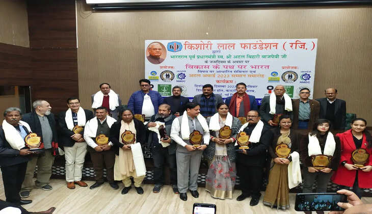 नई दिल्ली। किशोरी लाल फाउंडेशन ने पूर्व प्रधानमंत्री भारत रत्न अटल बिहारी वाजपेई जी के जन्मदिन के अवसर पर 'विकास के पथ पर भारत' विषय पर एक सेमिनार और समाज के हित में कार्य करने वाले समाजसेवियों को सम्मानित करने के उद्देश्य से अटल अवार्ड 2023 कार्यक्रम आयोजित किया। कार्यक्रम में मुख्य अतिथि के रूप में श्री कुलदीप सिंह अध्यक्ष एवं प्रबंध निदेशक हिल इंडिया लिमिटेड, श्री संजय मंजुल संयुक्त महानिदेशक पुरातत्व विभाग, श्री रमाकांत पांडे मीडिया सलाहकार उपराज्यपाल जम्मू एंड कश्मीर, श्री मनोज वर्मा वरिष्ठ पत्रकार, श्री राम कुमार उपसचिव कोयला मंत्रालय, श्री राकेश मिश्रा उप सचिव पेट्रोलियम एवं प्राकृतिक गैस मंत्रालय, श्री जगदंबा सिंह प्रदेश उपाध्यक्ष भाजपा पूर्वांचल प्रकोष्ठ एवं राम नारायण श्रीवास्तव वरिष्ठ पत्रकार आदि उपस्थित रहे। कार्यक्रम की अध्यक्षता संस्था के अध्यक्ष कुलदीप शर्मा ने की।