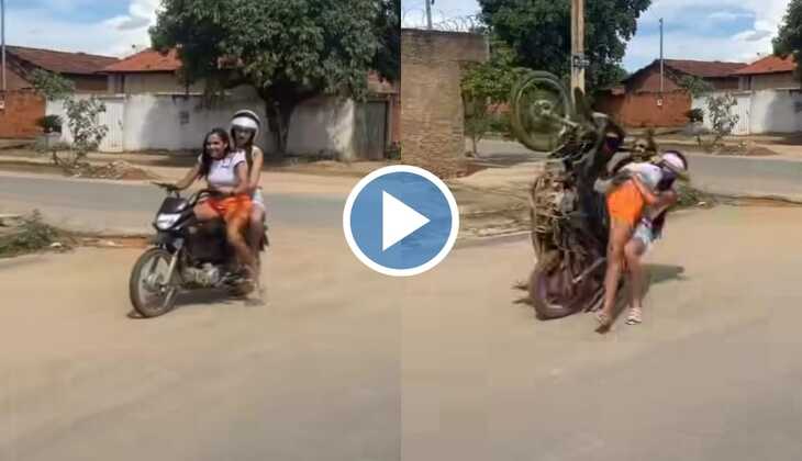 वायरल वीडियो में आप देख सकते हैं कि दो लड़कियां बाइक चला रही है और देखते ही देखते लड़की बाइक का एक्सीलेटर खींचती है और बाइक आगे से उठ जाती है और दोनों लड़कियां धड़ाम से रोड पर गिरती हैं. पीछे वाली लड़की रोड पर ही बैठी रह जाती है और दूसरी लड़की बाइक लेकर खड़ी हो जाती है. सोशल मीडिया पर इस वीडियो पर ढेर सारे फनी कमेंट आ रहे हैं.