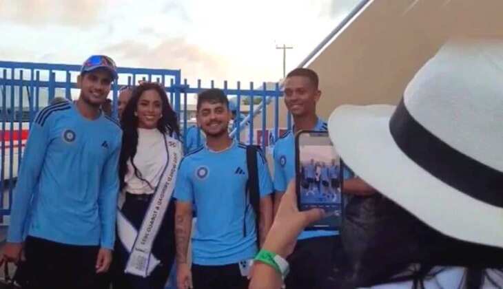 इस वीडियो में भारत के खिलाड़ी मैदान के बाहर गेट पर खड़े हैं. वो सभी बस में जाने के लिए बैग लेकर तैयार है. इस दौरान मिड वर्ल्ड अब्राहम आती हैं और ईशान, गिल और यशस्वी से मिलती है. वो इन सभी खिलाड़ियो के साथ सेल्फ लेती हुई और वीडियो बनवाती हुई नजर आती हैं. इस दौरान उनके साथ ब्रायन लारा भी नजर आते हैं. मिस वर्ल्ड से जब तीनों खिलाड़ियों से मुलाकात के बारे में पूछा जाता है तो वो कहती हैं ये सभी बहुत वेलकमिंक और वॉर्मिंग हैं.