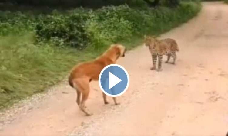 सबसे पहले तो आप इस वीडियो को देखिए जिससे आपके पूरा माजरा समझ आ सके. जंगल के बीच से गुजर रहे रास्ते पर एक कुत्ता आराम फरमा रहा होता है. तभी अचानक से ही एक तेंदुआ कुत्ते पर हमला करते हुए कूद पड़ता है.
