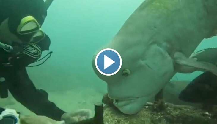 वायरल वीडियो में आप देख सकते हैं कि एक गोताखोर समुद्र की गहराई में हथोड़ा लेकर कोई चीज तोड़ रहा है और उसके सामने एक ऐसी अजीबोगरीब मछली है जिसका सर काफी बड़ा है और मुंह भी काफी अजीब है. इस मछली की आंखें बाहर निकली हुई है और यह साइज में भी काफी बड़ी है. गोताखोर हथौड़े से कोई चीज तोड़ता है और उसमें से कुछ निकलता है वह मछली को खिला देता है. यह वीडियो देखने के बाद सोशल मीडिया पर लोग अलग-अलग तरीके की प्रतिक्रिया दे रहे हैं.