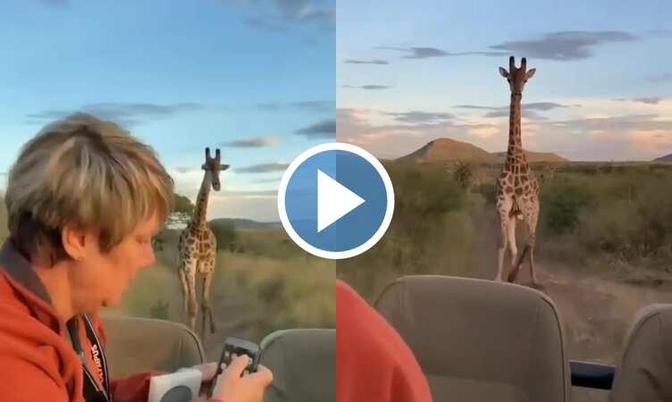 वायरल हो रहे इस वीडियो में आप देख सकते हैं कि एक महिला एक खुली गाड़ी के पीछे बैठकर जिराफ की फोटो ले रही है लेकिन अचानक जिराफ को गुस्सा आ जाता है और वह गाड़ी के पीछे भागने लगता है. गाड़ी चलाने वाला गाड़ी तेज भगाता है लेकिन जरा पीछा करता रहता है जिराफ इतना करीब आ जाता है कि औरत की भी चीख निकल जाती है.
