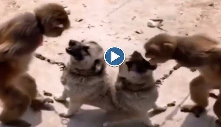 Monkey Vs Dog: अरे बाप रे! बंदर और छोटे से कुत्ते के बीच हो गई झड़प, देखिए कौन किस पर पड़ा भारी