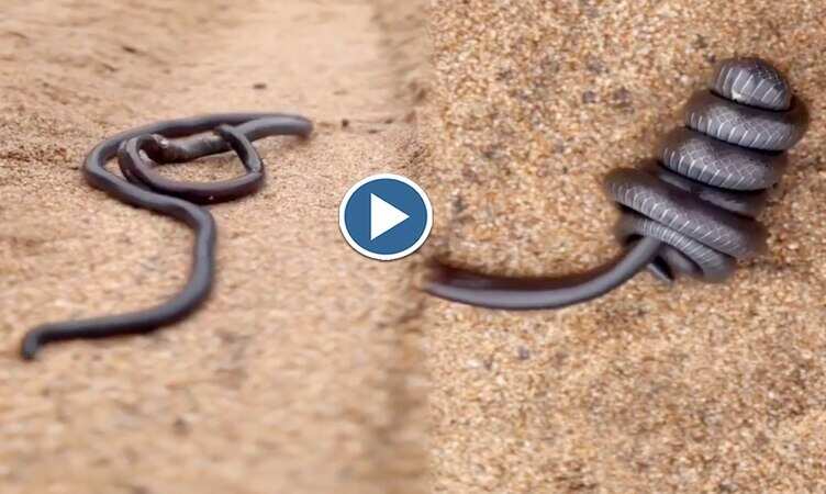 Snake Video: सांप को काफी खतरनाक जानवर माना जाता है क्योंकि इनके काटने से व्यक्ति का जीवित रहना भी मुश्किल हो जाता है. वहीं इन दिनों दो सापों (Snake Viral Video) की लड़ाई का एक वीडियो इंटरनेट पर तेजी से वायरल हो रहा है जिसमें एक बड़ा सांप छोटे वाले की भावई किए हुए है. इतना ही नहीं पहले बड़ा वाला काला सांप छोटे वाले पर हमला करता है फिर वह उसका सिर अपने मुंह में रख लेता है, जिसे देखकर लोग हैरान रह जा रहे हैं.