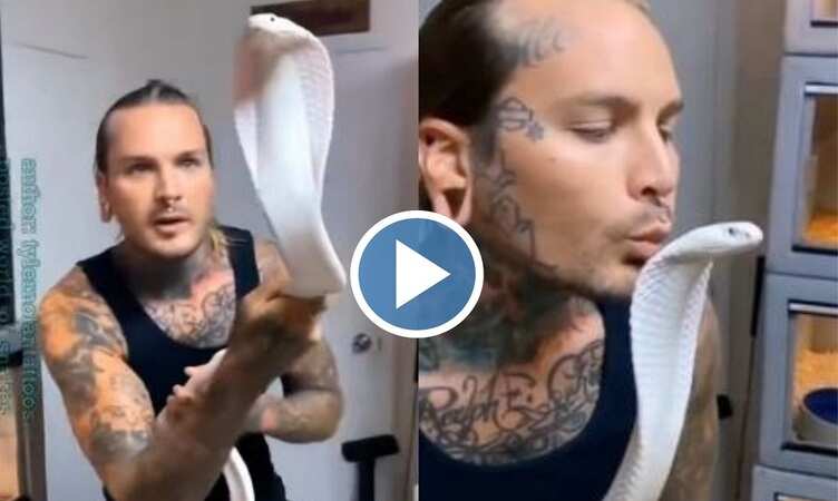 Snake Video: बाप रे! गुस्से में डूबे सफेद कोबरा को इस शख्स ने कर लिया 'kiss', देखिए फिर क्या हुआ