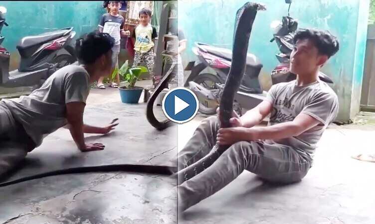 Snake Viral Video: सोशल मीडिया पर रोजाना ही कई सारे वीडियो वायरल होते रहते हैं. आपने देखा होगा कि सांप कभी भी अपने शिकार पर हमला कर देता है और इतनी फुर्ती के साथ हमला करता है कि शिकार को भी पता नहीं चलता. लेकिन क्या हो जब कोई इंसान सांप से पंगा ले ले? इस बार कोबरा सांप का एक ऐसा वीडियो सामने आया है जिसे देखकर लोगों की आंखें खुली रह जा रही हैं. क्योंकि ये लड़का सांप के साथ मजाक में ऐसे खेल रहा है जैसे ही कि वह उसके बचपन का दोस्त है.