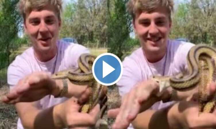 वायरल वीडियो में आप देख सकते हैं कि एक शख्स अपने हाथों में खतरनाक सांप पकड़े हुए हैं और देखते ही देखते वह अपना हाथ इस सांप के मुंह में दे देता है. सांप उसके हाथ में काट लेता है. हालांकि शख्स पर इसका कोई असर नहीं होता क्योंकि इस सांप के अंदर जहर नहीं होता है. लेकिन यह वीडियो देखने पर ऐसा ही लगेगा कि यह सब बड़ा जहरीला है. यह वीडियो सोशल मीडिया पर जमकर वायरल हो रहा है और लोग इस पर अपनी अलग-अलग प्रतिक्रियाएं दे रहे हैं.