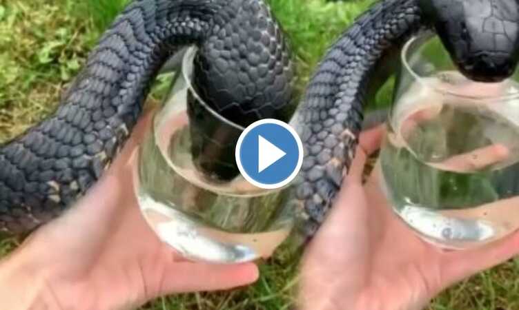 Snake Viral Video: खतरनाक काले सांप को शख्स ने बच्चे की तरह गिलास से पिलाया पानी, वीडियो देख हैरत में पड़ जाएंगे आप