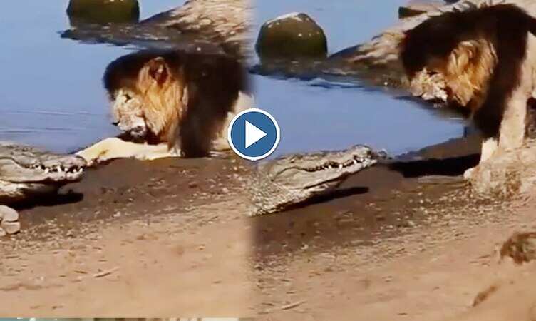 Viral Video: बब्बर शेर का पड़ा खूखार मगरमच्छ से पाला, देखिए दोनों में कौन है सबसे अधिक जबर