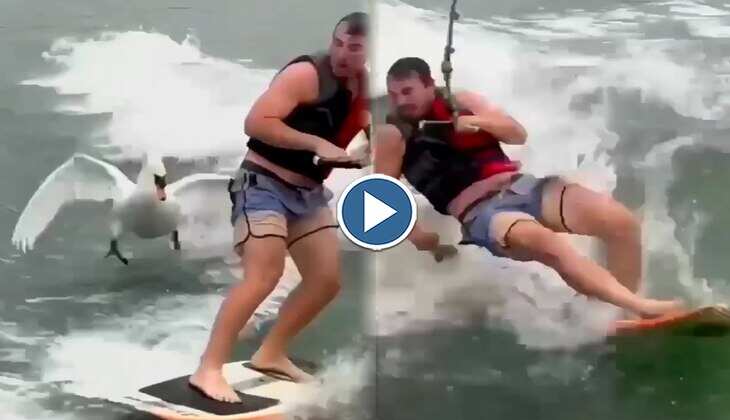 Viral Video: हाय रे! पानी में स्केटिंग कर रहे इस शख्स पर हंस ने कर दिया हमला, देखिए वीडियो