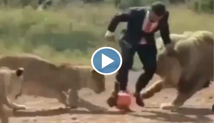 Viral Video: ओ तेरी! शेर-शेरनी के साथ मजे में फुटबॉल खेल रहा शख्स, लोग बोले-'ये तो अविश्वसनीय है'
