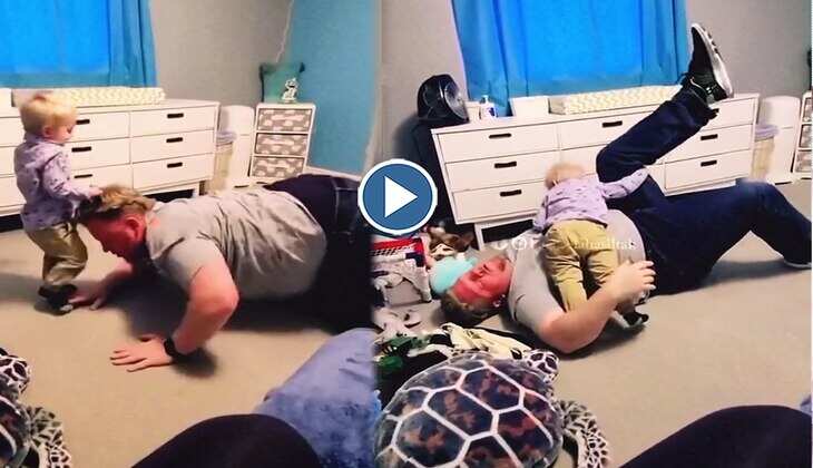 वीडियो में आप देखें कि क्यूट सा बच्चा पहले तो पापा के पेट पर लात मारता है जिससे वह एक्टिंग करते हुए नीचे गिर जाते हैं. फिर बच्चा उनकी गर्दन पकड़कर जोर से पटक मारता है. इसके बाद बच्चा टेबल पर खड़े होकर उनके ऊपर कूद पड़ता है जिसके बाद घंटी बजती है और वह जीत जाता है. बच्चे और पिता का यह वीडियो बिल्कुल WWE की तरह ही लग रहा है.